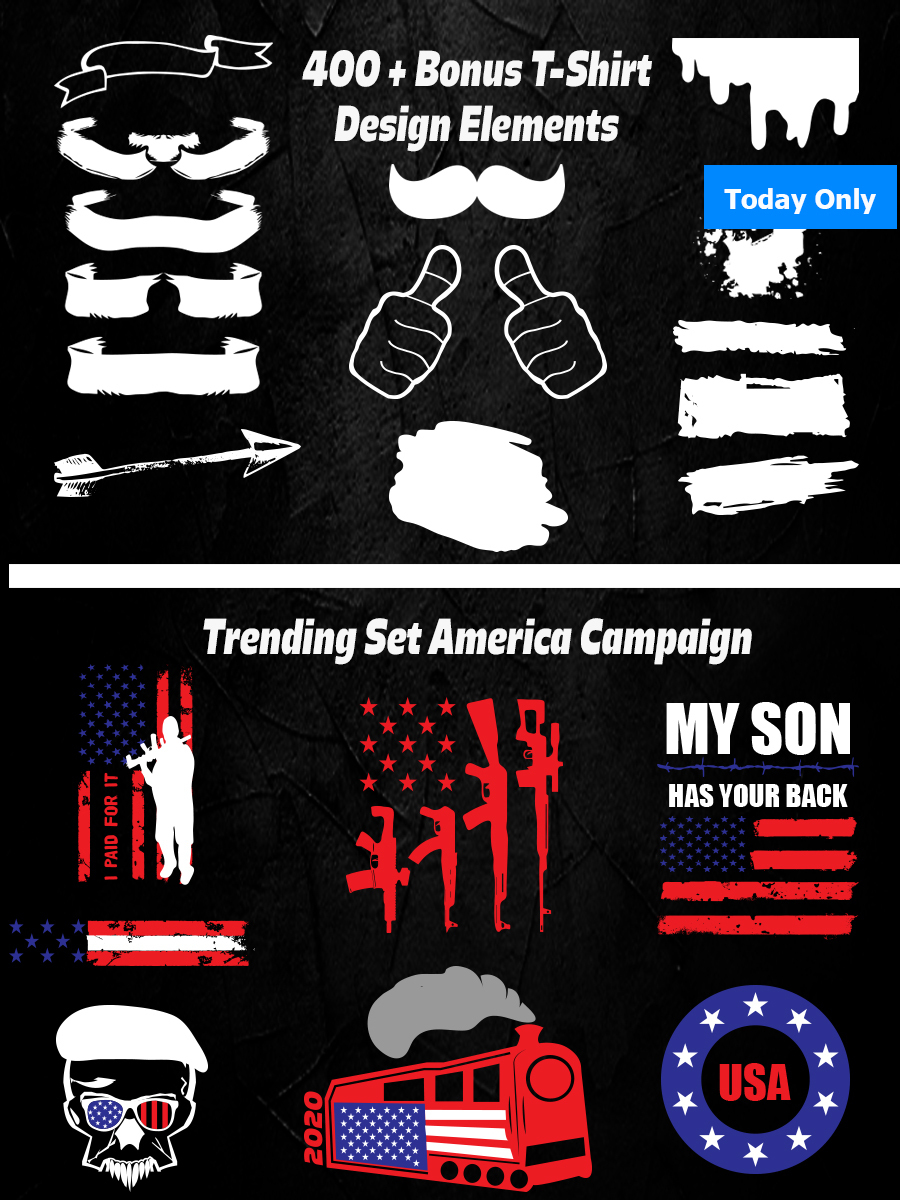 T-Shirt business success is all about quantity of t-shirts with good graphics. Our winning T-shirt design elements help you to make lots of T-shirt with real world t-shirt vibe on them.